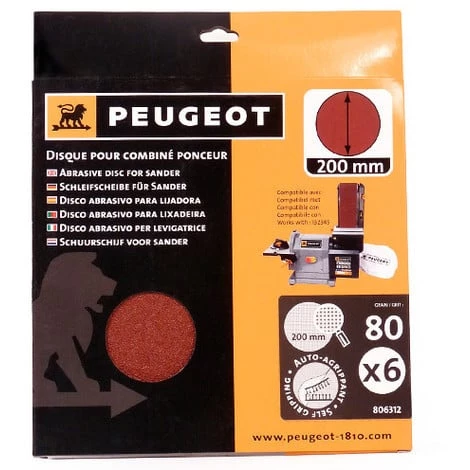 6 disques abrasifs auto-agrippants D. 200 mm – Grain 80 pour ENERGYSAND 200ASP – 806312 – Peugeot