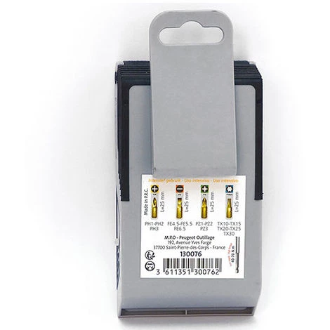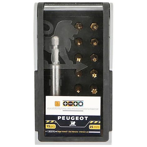 - Coffret de vissage : Coffret embouts de vissage titanium – 15 pièces – Phillips, Pozidriv, Torx et Fente