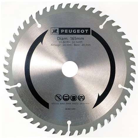 Lame carbure pour scie circulaire D. 165 x 20 mm x Z 50 – Bois / PVC – 801321 – Peugeot